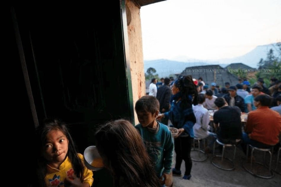 Với người Hà Nhì, hàng xóm và những ng được mời đến sẽ ăn riêng ngồi sân nhà