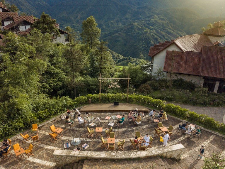Nằm tại khu dich vụ Nest Castle của Sapa Jade Hill Resort & Spa, The Yard Cinema vơi tầm view ngắm thung lũng Mường Hoa và khu biệt thự Nest Villa xinh xắn.